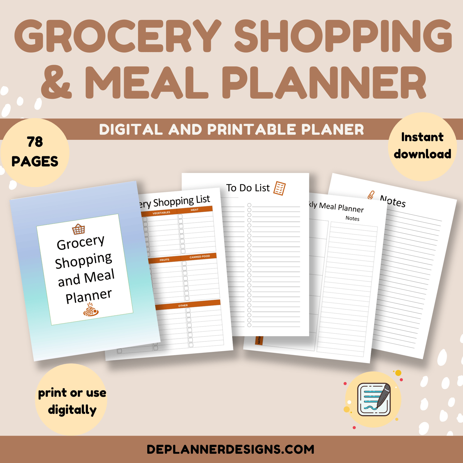 **The Grocery Shopping and Meal Planner includes 78 total pages in 8.5 x 11 US Letter size: