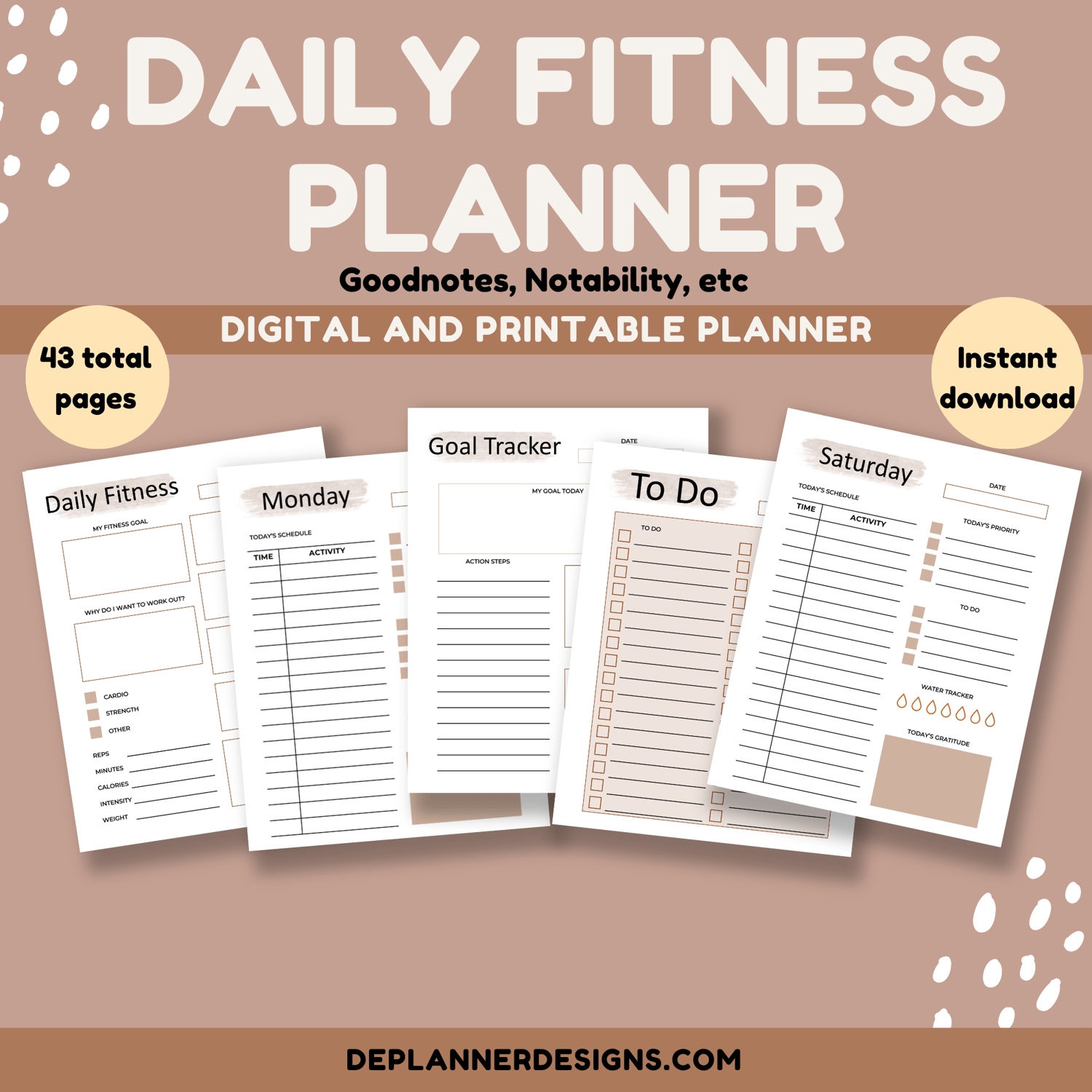 **The daily fitness planner includes 43 total pages in 8.5 x 11 US Letter size: